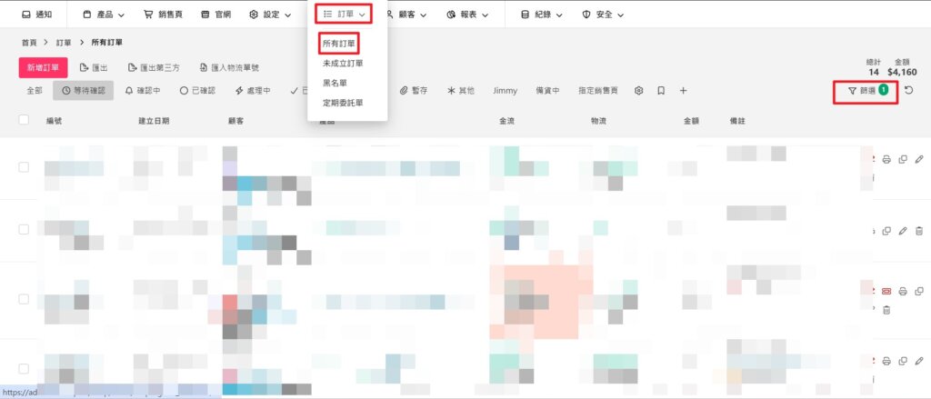 1.可前往後台「訂單 > 所有訂單 > 篩選」